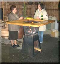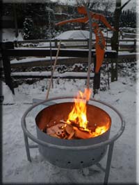 Kombination aus Stehtisch und Schwedenfeuer als Feuerstelle, rustikale Tischplatte aus Fichte, inklusive Schwedenfeuer mit praktischer Anzündhilfe - einfach wie eine Kerze. |